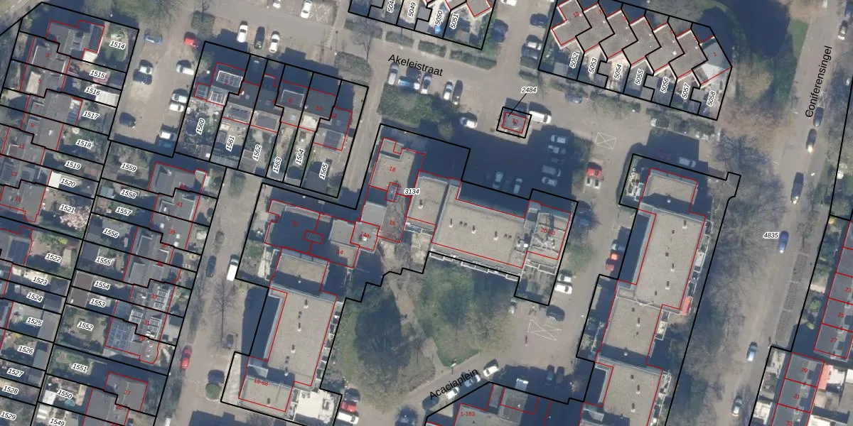 Het perceel waarop Akeleistraat 46 staat heeft een oppervlakte van 2510 m². Dit is een zeer groot perceel. De perceeloppervlakte wordt geregistreerd door het Kadaster. Gedetailleerde informatie over de maten van dit perceel kunt u vinden in het rapport Kadastrale kaart met maatvoering van Akeleistraat 46.