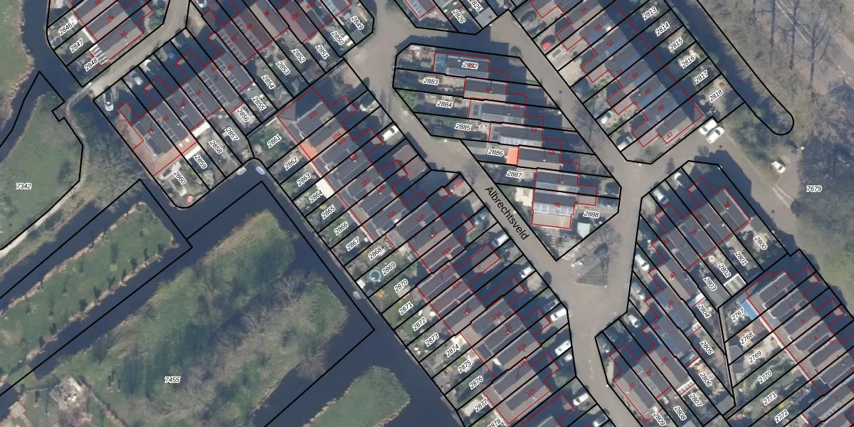 Het perceel waarop Albrechtsveld 110 staat heeft een oppervlakte van 164 m². Dit is een middelgroot perceel. De perceeloppervlakte wordt geregistreerd door het Kadaster. Gedetailleerde informatie over de maten van dit perceel kunt u vinden in het rapport Kadastrale kaart met maatvoering van Albrechtsveld 110.