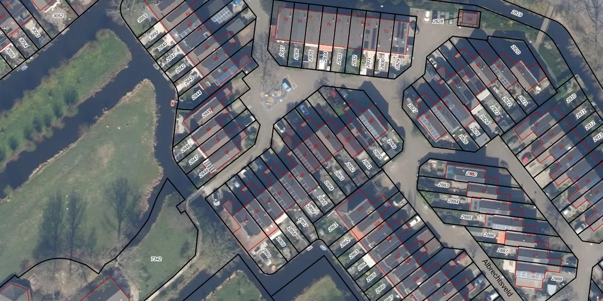 Albrechtsveld 97 is gelegen op kadastraal perceel GDA01M2854. Deze kadastrale aanduiding is uniek en wordt gebruikt door het Kadaster om eigendomsrechten en andere zakelijke rechten vast te leggen. Het perceel maakt onderdeel uit van de kadastrale gemeente Gouda.