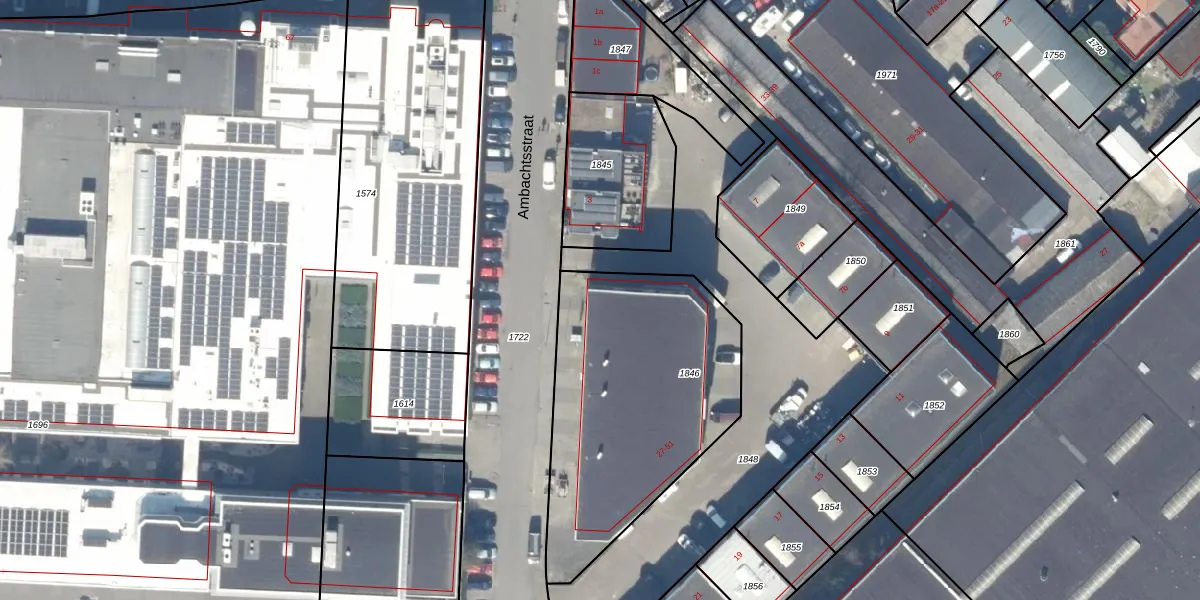 Het perceel waarop Ambachtsstraat 37 staat heeft een oppervlakte van 1192 m². Dit is een zeer groot perceel. De perceeloppervlakte wordt geregistreerd door het Kadaster. Gedetailleerde informatie over de maten van dit perceel kunt u vinden in het rapport Kadastrale kaart met maatvoering van Ambachtsstraat 37.