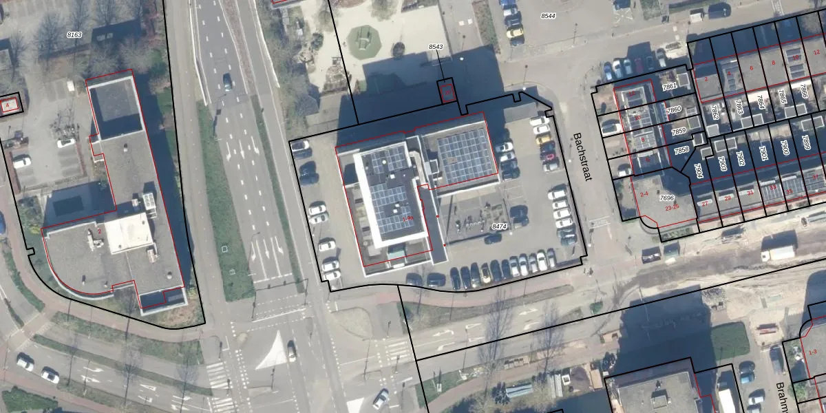 Bachstraat 1 is gelegen op kadastraal perceel GDA01K8474. Deze kadastrale aanduiding is uniek en wordt gebruikt door het Kadaster om eigendomsrechten en andere zakelijke rechten vast te leggen. Het perceel maakt onderdeel uit van de kadastrale gemeente Gouda.