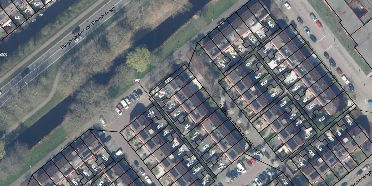 Balthazar de Moucheronlaan 13 is gelegen op kadastraal perceel GDA01M6961. Deze kadastrale aanduiding is uniek en wordt gebruikt door het Kadaster om eigendomsrechten en andere zakelijke rechten vast te leggen. Het perceel maakt onderdeel uit van de kadastrale gemeente Gouda.