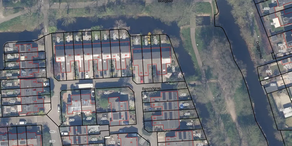 Beemdgras 76 is gelegen op kadastraal perceel GDA01M4270. Deze kadastrale aanduiding is uniek en wordt gebruikt door het Kadaster om eigendomsrechten en andere zakelijke rechten vast te leggen. Het perceel maakt onderdeel uit van de kadastrale gemeente Gouda.