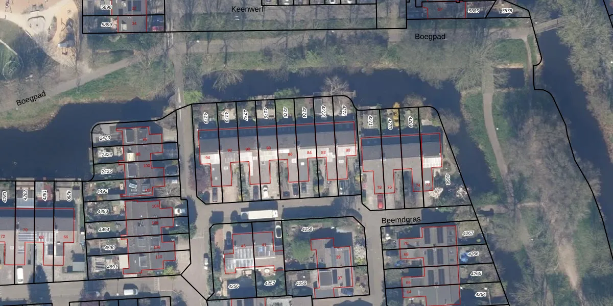 Beemdgras 84 is gelegen op kadastraal perceel GDA01M4274. Deze kadastrale aanduiding is uniek en wordt gebruikt door het Kadaster om eigendomsrechten en andere zakelijke rechten vast te leggen. Het perceel maakt onderdeel uit van de kadastrale gemeente Gouda.