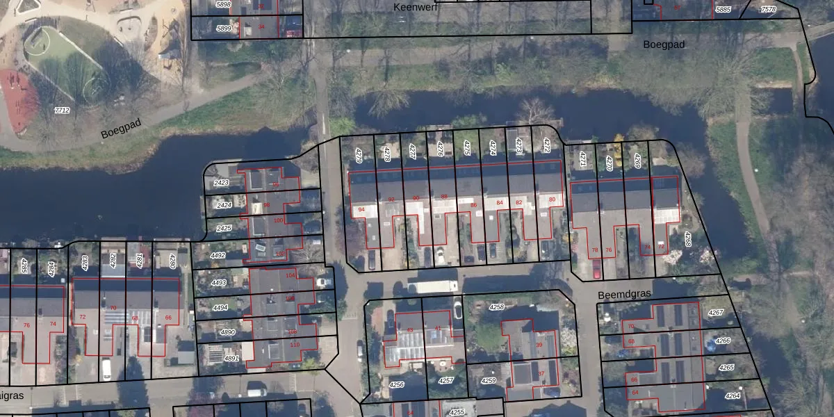 Gebruik de zoekbalk of klik op een perceel voor informatie over de adressen binnen dit perceel.