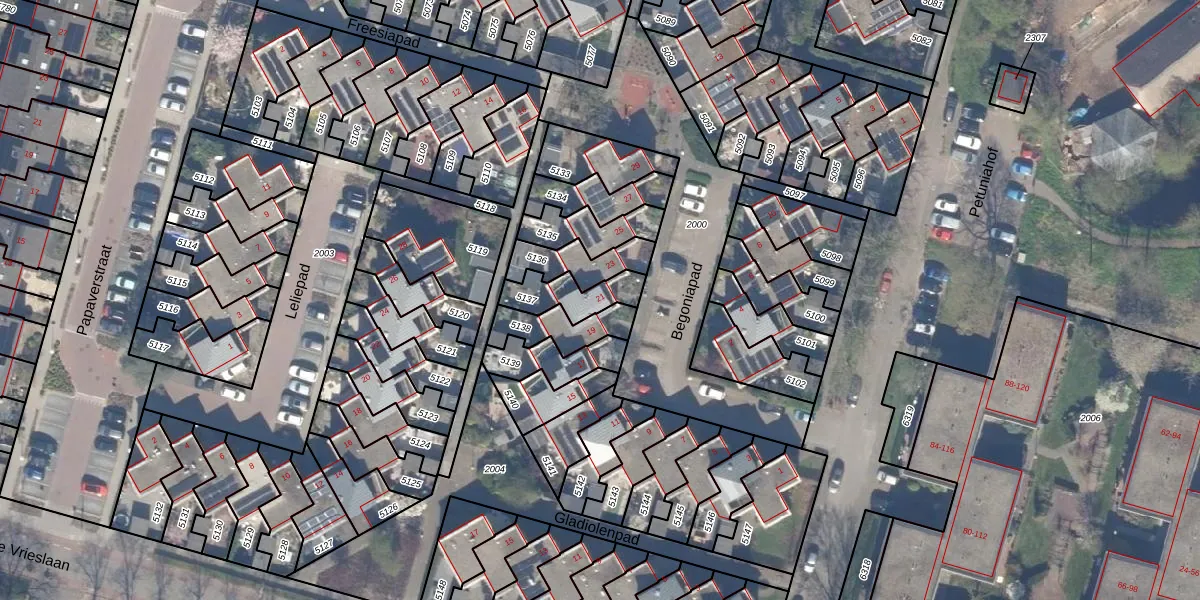 Het perceel waarop Begoniapad 21 staat heeft een oppervlakte van 127 m². Dit is een middelgroot perceel. De perceeloppervlakte wordt geregistreerd door het Kadaster. Gedetailleerde informatie over de maten van dit perceel kunt u vinden in het rapport Kadastrale kaart met maatvoering van Begoniapad 21.