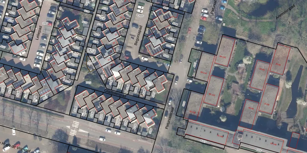 Gebruik de zoekbalk of klik op een perceel voor informatie over de adressen binnen dit perceel.