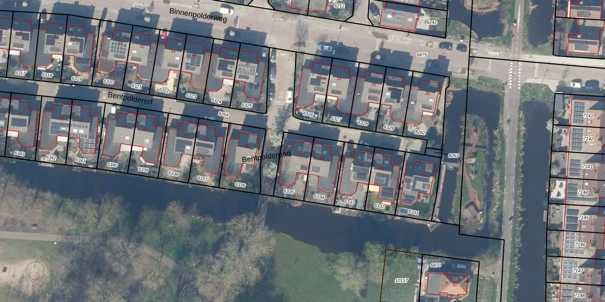 Bentpoldererf 24 is gelegen op kadastraal perceel GDA01K6335. Deze kadastrale aanduiding is uniek en wordt gebruikt door het Kadaster om eigendomsrechten en andere zakelijke rechten vast te leggen. Het perceel maakt onderdeel uit van de kadastrale gemeente Gouda.