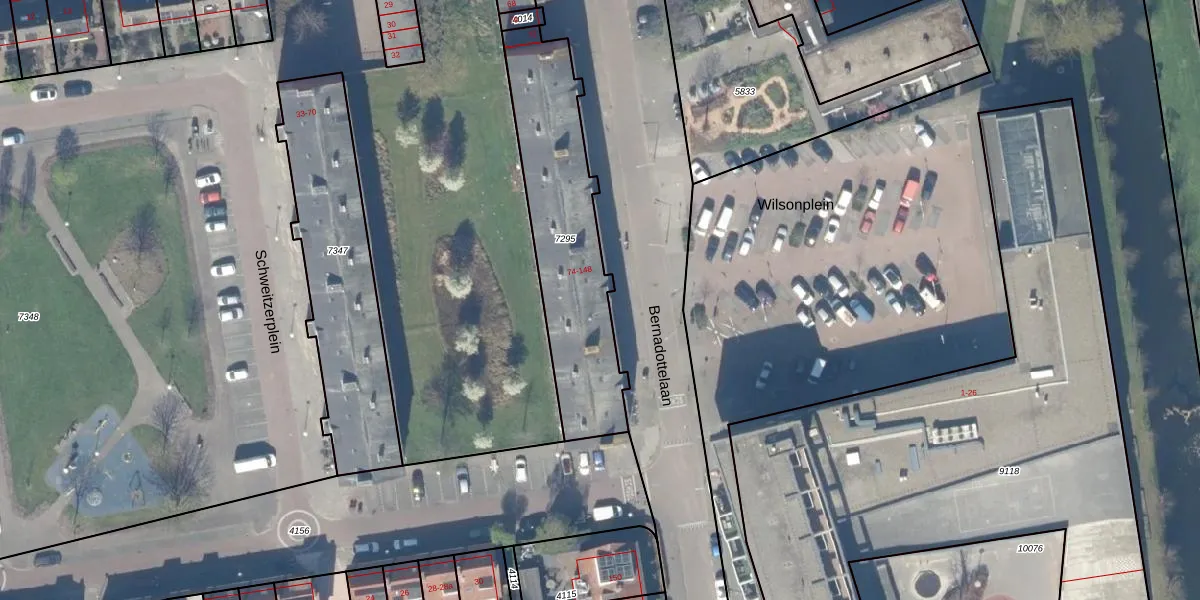 Bernadottelaan 116 is gelegen op kadastraal perceel GDA01K7295. Deze kadastrale aanduiding is uniek en wordt gebruikt door het Kadaster om eigendomsrechten en andere zakelijke rechten vast te leggen. Het perceel maakt onderdeel uit van de kadastrale gemeente Gouda.