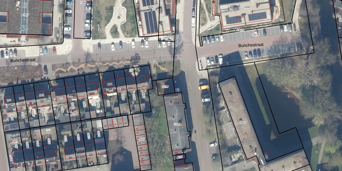 Gebruik de zoekbalk of klik op een perceel voor informatie over de adressen binnen dit perceel.