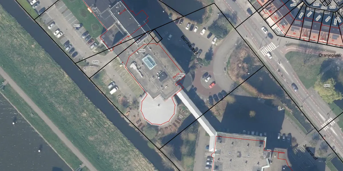 Het perceel waarop Bernhardhof 400 staat heeft een oppervlakte van 4483 m². Dit is een zeer groot perceel. De perceeloppervlakte wordt geregistreerd door het Kadaster. Gedetailleerde informatie over de maten van dit perceel kunt u vinden in het rapport Kadastrale kaart met maatvoering van Bernhardhof 400.