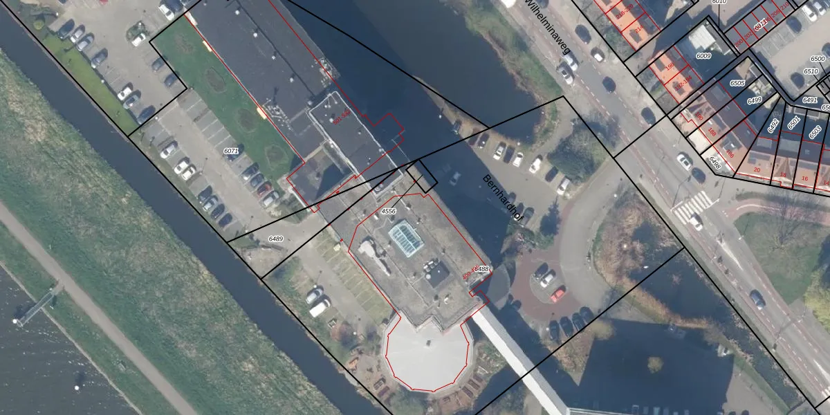 Het perceel waarop Bernhardhof 428 staat heeft een oppervlakte van 4483 m². Dit is een zeer groot perceel. De perceeloppervlakte wordt geregistreerd door het Kadaster. Gedetailleerde informatie over de maten van dit perceel kunt u vinden in het rapport Kadastrale kaart met maatvoering van Bernhardhof 428.
