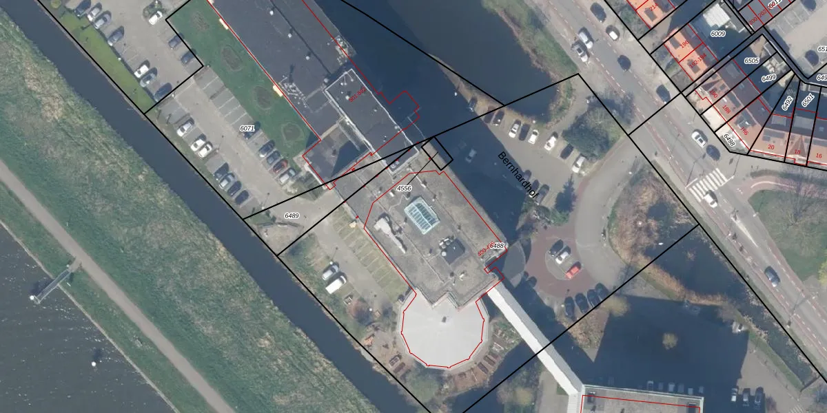 Het perceel waarop Bernhardhof 467 staat heeft een oppervlakte van 4483 m². Dit is een zeer groot perceel. De perceeloppervlakte wordt geregistreerd door het Kadaster. Gedetailleerde informatie over de maten van dit perceel kunt u vinden in het rapport Kadastrale kaart met maatvoering van Bernhardhof 467.