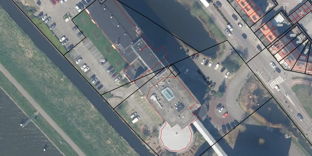 Het perceel waarop Bernhardhof 471 staat heeft een oppervlakte van 4483 m². Dit is een zeer groot perceel. De perceeloppervlakte wordt geregistreerd door het Kadaster. Gedetailleerde informatie over de maten van dit perceel kunt u vinden in het rapport Kadastrale kaart met maatvoering van Bernhardhof 471.