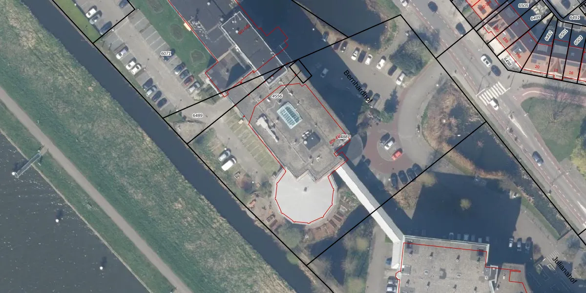 Het perceel waarop Bernhardhof 483 staat heeft een oppervlakte van 4483 m². Dit is een zeer groot perceel. De perceeloppervlakte wordt geregistreerd door het Kadaster. Gedetailleerde informatie over de maten van dit perceel kunt u vinden in het rapport Kadastrale kaart met maatvoering van Bernhardhof 483.