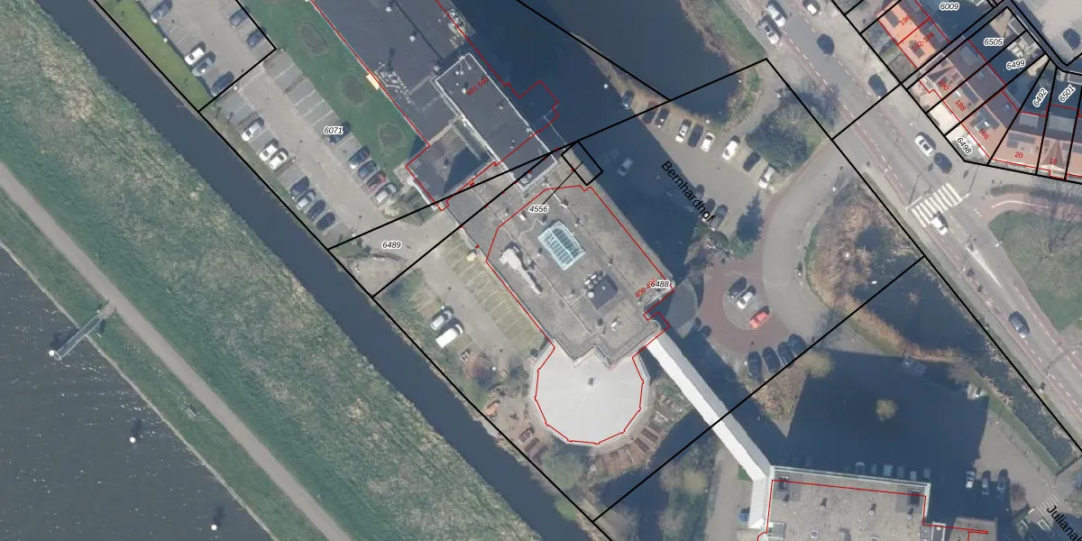 Het perceel waarop Bernhardhof 486 staat heeft een oppervlakte van 4483 m². Dit is een zeer groot perceel. De perceeloppervlakte wordt geregistreerd door het Kadaster. Gedetailleerde informatie over de maten van dit perceel kunt u vinden in het rapport Kadastrale kaart met maatvoering van Bernhardhof 486.