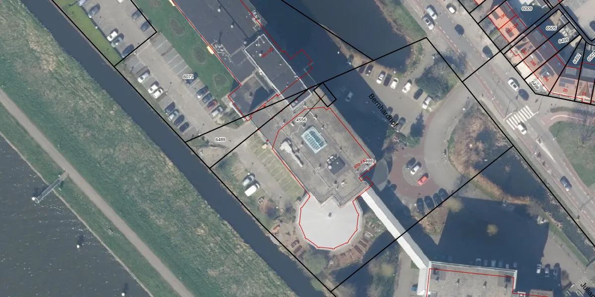 Het perceel waarop Bernhardhof 487 staat heeft een oppervlakte van 4483 m². Dit is een zeer groot perceel. De perceeloppervlakte wordt geregistreerd door het Kadaster. Gedetailleerde informatie over de maten van dit perceel kunt u vinden in het rapport Kadastrale kaart met maatvoering van Bernhardhof 487.