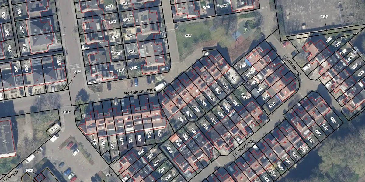 Gebruik de zoekbalk of klik op een perceel voor informatie over de adressen binnen dit perceel.