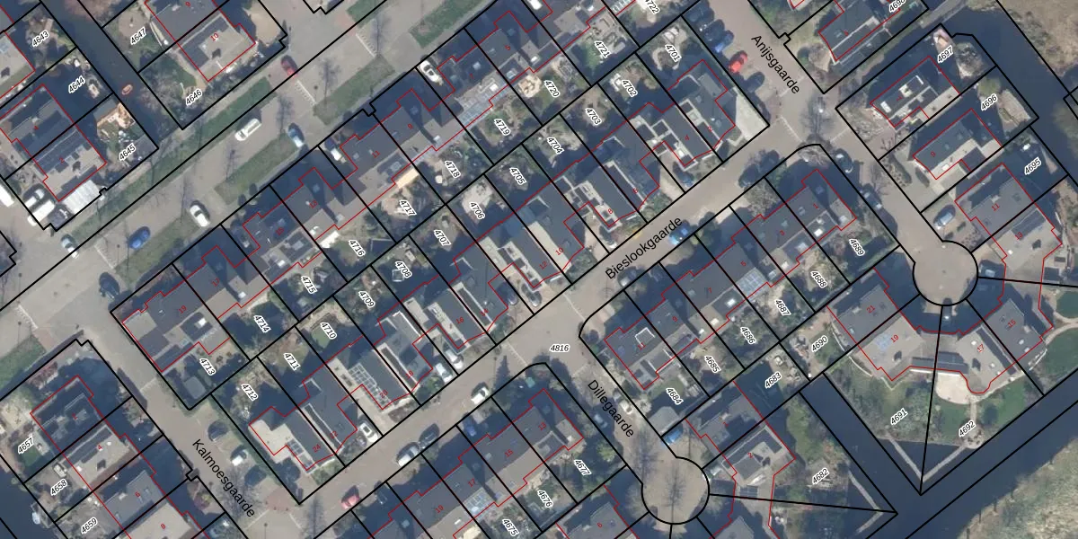 Gebruik de zoekbalk of klik op een perceel voor informatie over de adressen binnen dit perceel.