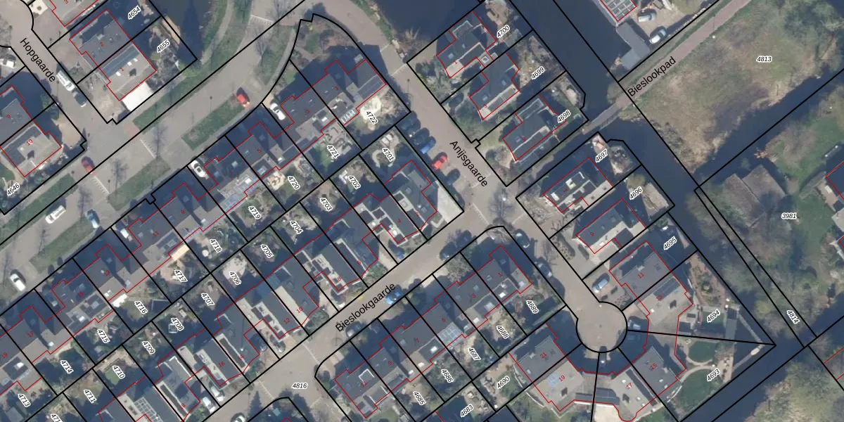 Het perceel waarop Bieslookgaarde 2 staat heeft een oppervlakte van 290 m². Dit is een middelgroot perceel. De perceeloppervlakte wordt geregistreerd door het Kadaster. Gedetailleerde informatie over de maten van dit perceel kunt u vinden in het rapport Kadastrale kaart met maatvoering van Bieslookgaarde 2.