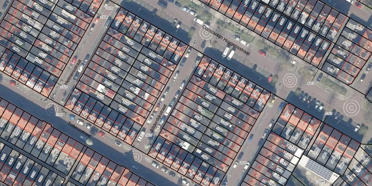 Gebruik de zoekbalk of klik op een perceel voor informatie over de adressen binnen dit perceel.