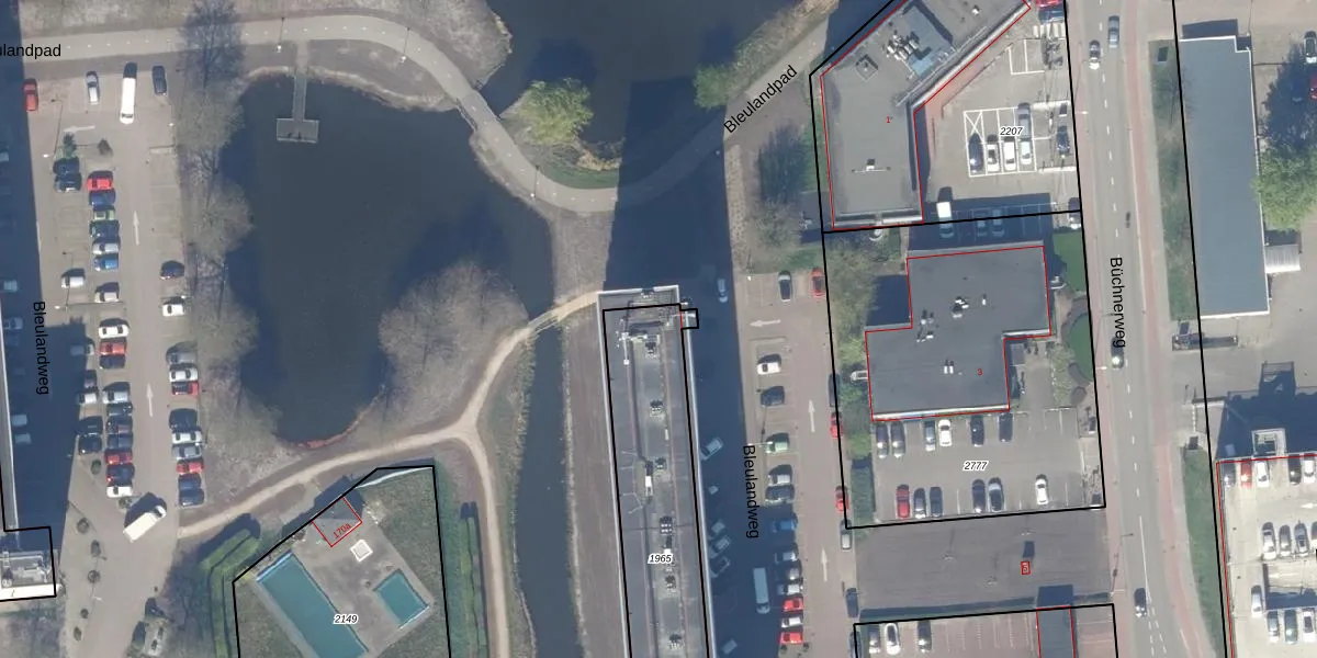 Het perceel waarop Bleulandweg 82 staat heeft een oppervlakte van 915 m². Dit is een groot perceel. De perceeloppervlakte wordt geregistreerd door het Kadaster. Gedetailleerde informatie over de maten van dit perceel kunt u vinden in het rapport Kadastrale kaart met maatvoering van Bleulandweg 82.