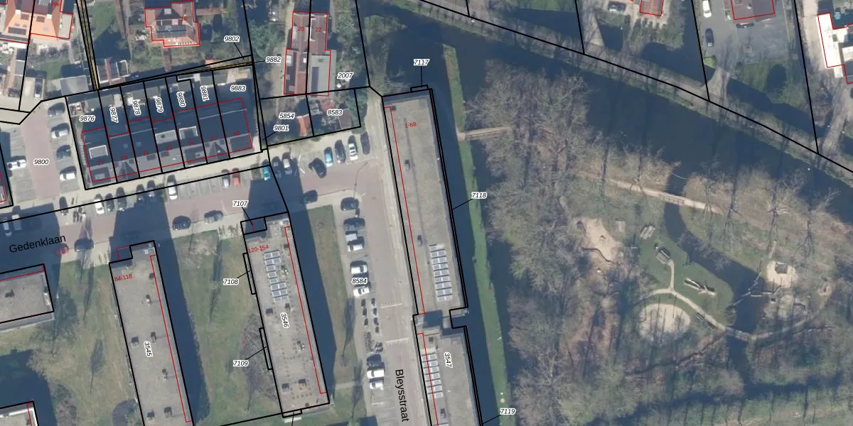 Het perceel waarop Bleysstraat 14 staat heeft een oppervlakte van 1217 m². Dit is een zeer groot perceel. De perceeloppervlakte wordt geregistreerd door het Kadaster. Gedetailleerde informatie over de maten van dit perceel kunt u vinden in het rapport Kadastrale kaart met maatvoering van Bleysstraat 14.