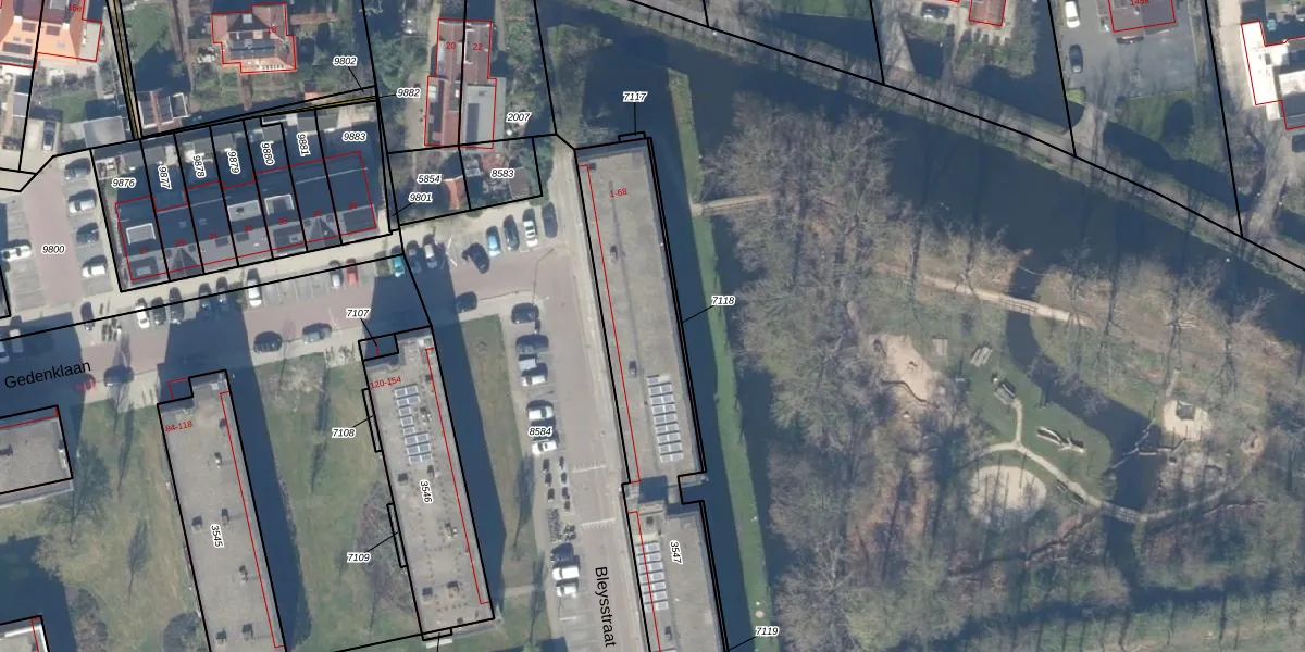Het perceel waarop Bleysstraat 20 staat heeft een oppervlakte van 1217 m². Dit is een zeer groot perceel. De perceeloppervlakte wordt geregistreerd door het Kadaster. Gedetailleerde informatie over de maten van dit perceel kunt u vinden in het rapport Kadastrale kaart met maatvoering van Bleysstraat 20.