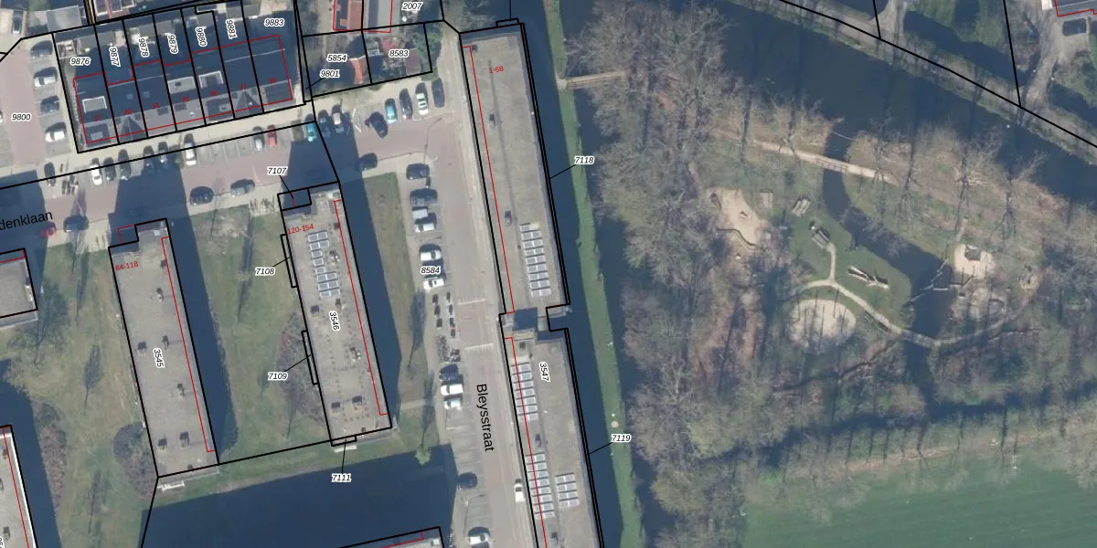 Het perceel waarop Bleysstraat 28 staat heeft een oppervlakte van 1217 m². Dit is een zeer groot perceel. De perceeloppervlakte wordt geregistreerd door het Kadaster. Gedetailleerde informatie over de maten van dit perceel kunt u vinden in het rapport Kadastrale kaart met maatvoering van Bleysstraat 28.