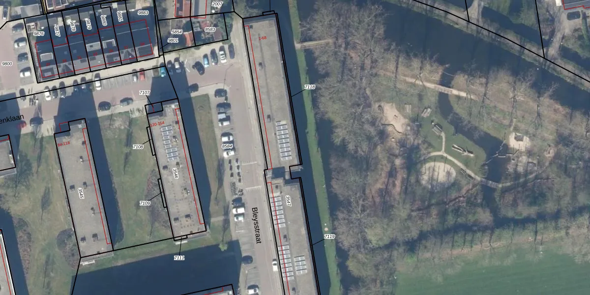 Het perceel waarop Bleysstraat 34 staat heeft een oppervlakte van 1217 m². Dit is een zeer groot perceel. De perceeloppervlakte wordt geregistreerd door het Kadaster. Gedetailleerde informatie over de maten van dit perceel kunt u vinden in het rapport Kadastrale kaart met maatvoering van Bleysstraat 34.
