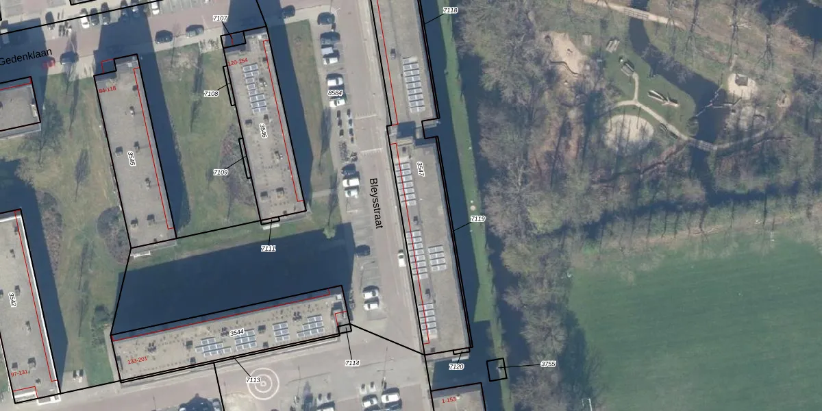 Het perceel waarop Bleysstraat 37 staat heeft een oppervlakte van 1217 m². Dit is een zeer groot perceel. De perceeloppervlakte wordt geregistreerd door het Kadaster. Gedetailleerde informatie over de maten van dit perceel kunt u vinden in het rapport Kadastrale kaart met maatvoering van Bleysstraat 37.