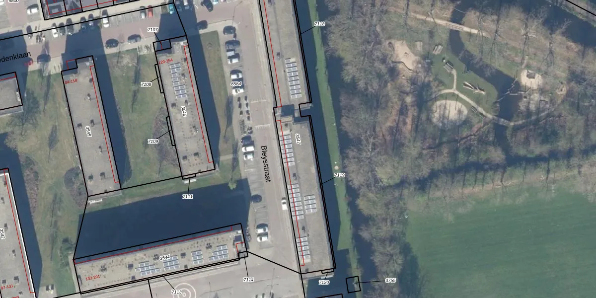 Het perceel waarop Bleysstraat 46 staat heeft een oppervlakte van 1217 m². Dit is een zeer groot perceel. De perceeloppervlakte wordt geregistreerd door het Kadaster. Gedetailleerde informatie over de maten van dit perceel kunt u vinden in het rapport Kadastrale kaart met maatvoering van Bleysstraat 46.
