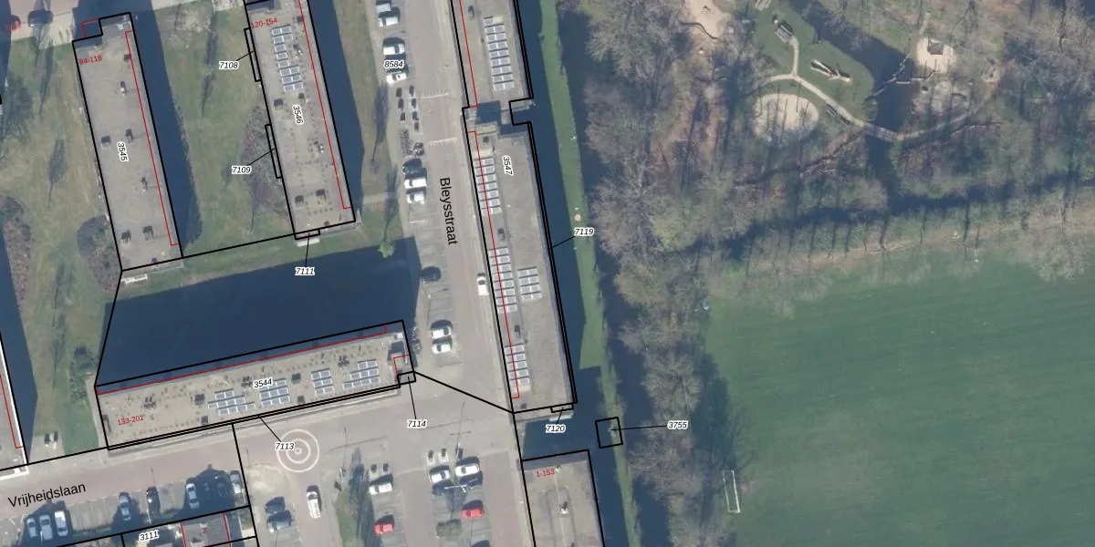 Het perceel waarop Bleysstraat 66 staat heeft een oppervlakte van 1217 m². Dit is een zeer groot perceel. De perceeloppervlakte wordt geregistreerd door het Kadaster. Gedetailleerde informatie over de maten van dit perceel kunt u vinden in het rapport Kadastrale kaart met maatvoering van Bleysstraat 66.