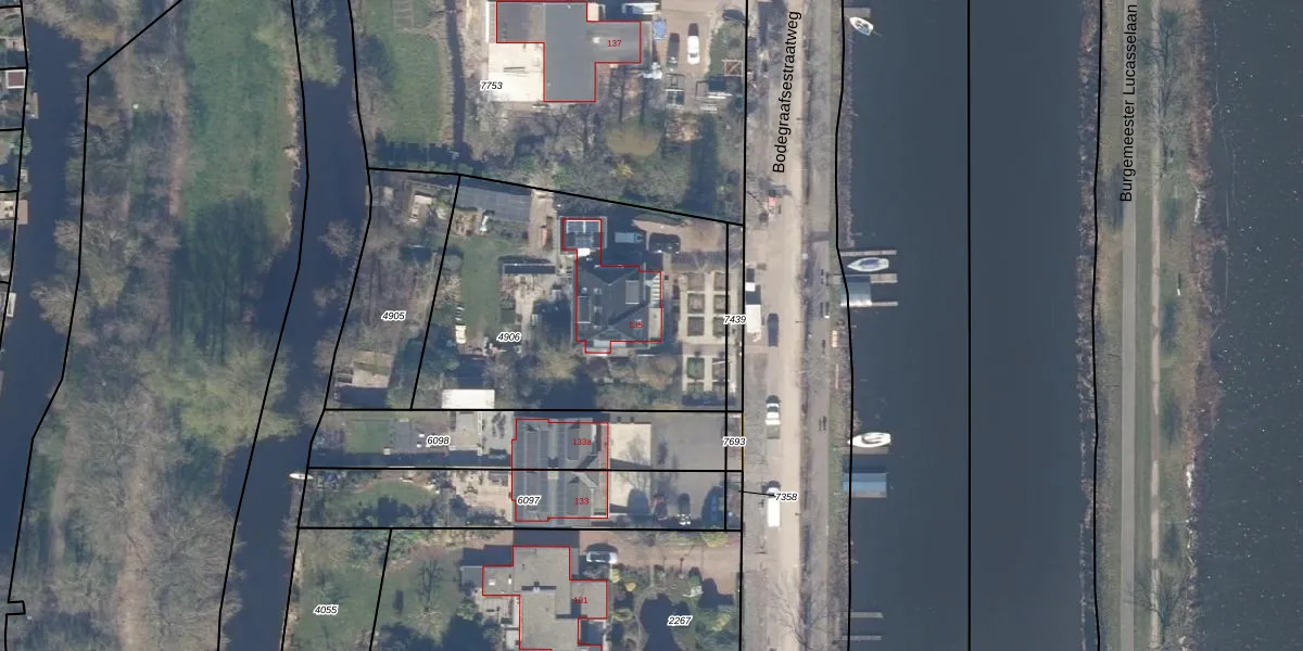 Bodegraafsestraatweg 135 is gelegen op kadastraal perceel GDA01M4906. Deze kadastrale aanduiding is uniek en wordt gebruikt door het Kadaster om eigendomsrechten en andere zakelijke rechten vast te leggen. Het perceel maakt onderdeel uit van de kadastrale gemeente Gouda.