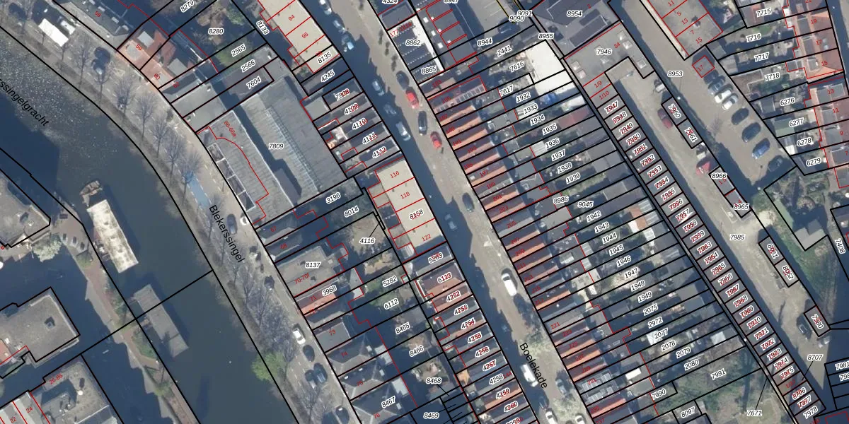 Boelekade 120 is gelegen op kadastraal perceel GDA01A8158. Deze kadastrale aanduiding is uniek en wordt gebruikt door het Kadaster om eigendomsrechten en andere zakelijke rechten vast te leggen. Het perceel maakt onderdeel uit van de kadastrale gemeente Gouda.