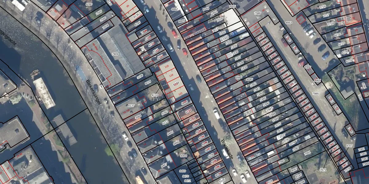 Boelekade 122 is gelegen op kadastraal perceel GDA01A8158. Deze kadastrale aanduiding is uniek en wordt gebruikt door het Kadaster om eigendomsrechten en andere zakelijke rechten vast te leggen. Het perceel maakt onderdeel uit van de kadastrale gemeente Gouda.