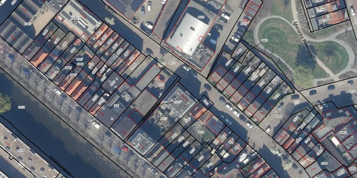 Het perceel waarop Boelekade 66 staat heeft een oppervlakte van 614 m². Dit is een groot perceel. De perceeloppervlakte wordt geregistreerd door het Kadaster. Gedetailleerde informatie over de maten van dit perceel kunt u vinden in het rapport Kadastrale kaart met maatvoering van Boelekade 66.