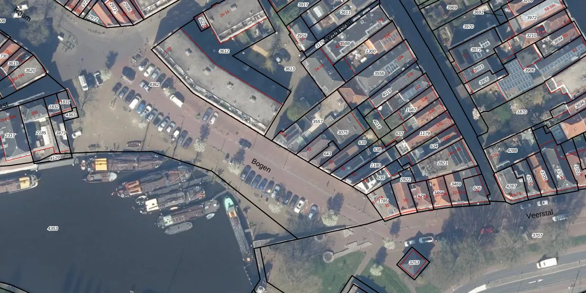 Het perceel waarop Bogen 47 staat heeft een oppervlakte van 195 m². Dit is een middelgroot perceel. De perceeloppervlakte wordt geregistreerd door het Kadaster. Gedetailleerde informatie over de maten van dit perceel kunt u vinden in het rapport Kadastrale kaart met maatvoering van Bogen 47.