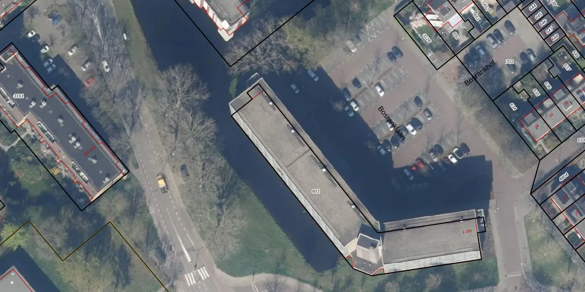 Bosranklaan 117 is gelegen op kadastraal perceel GDA01M601. Deze kadastrale aanduiding is uniek en wordt gebruikt door het Kadaster om eigendomsrechten en andere zakelijke rechten vast te leggen. Het perceel maakt onderdeel uit van de kadastrale gemeente Gouda.