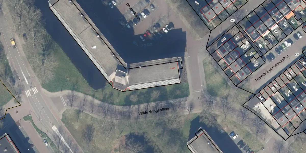 Bosranklaan 175 is gelegen op kadastraal perceel GDA01M601. Deze kadastrale aanduiding is uniek en wordt gebruikt door het Kadaster om eigendomsrechten en andere zakelijke rechten vast te leggen. Het perceel maakt onderdeel uit van de kadastrale gemeente Gouda.