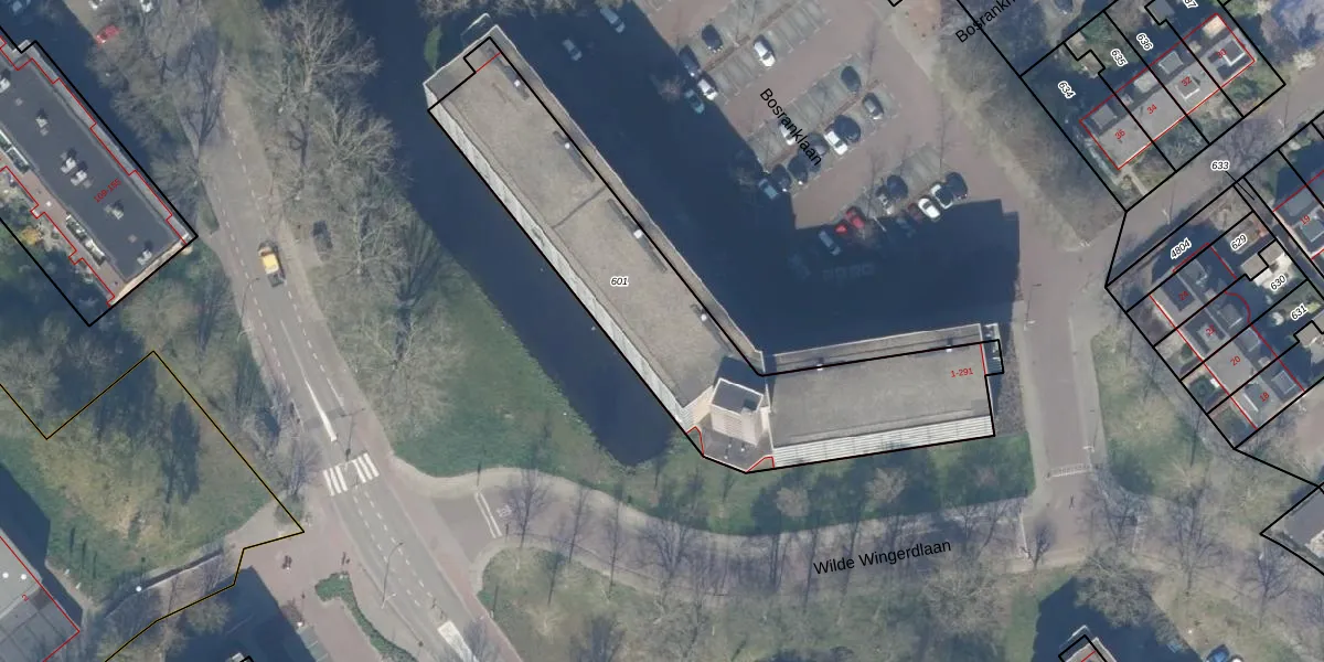 Bosranklaan 189 is gelegen op kadastraal perceel GDA01M601. Deze kadastrale aanduiding is uniek en wordt gebruikt door het Kadaster om eigendomsrechten en andere zakelijke rechten vast te leggen. Het perceel maakt onderdeel uit van de kadastrale gemeente Gouda.