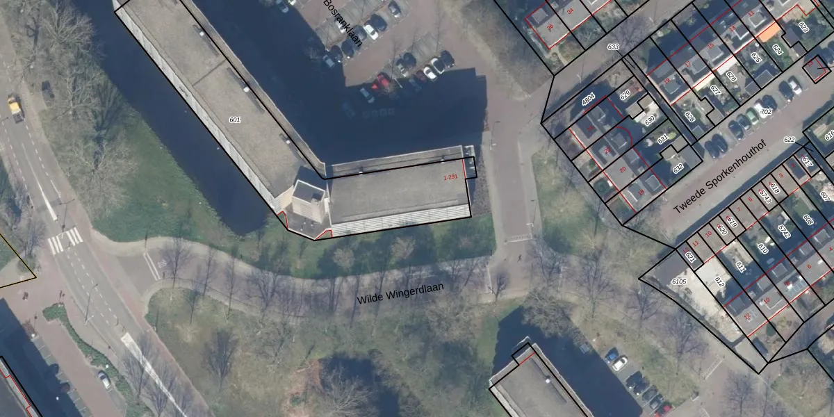Bosranklaan 257 is gelegen op kadastraal perceel GDA01M601. Deze kadastrale aanduiding is uniek en wordt gebruikt door het Kadaster om eigendomsrechten en andere zakelijke rechten vast te leggen. Het perceel maakt onderdeel uit van de kadastrale gemeente Gouda.