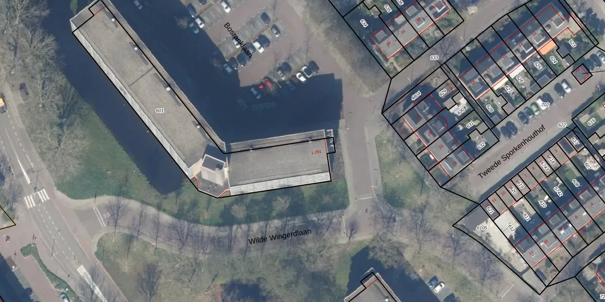 Bosranklaan 45 is gelegen op kadastraal perceel GDA01M601. Deze kadastrale aanduiding is uniek en wordt gebruikt door het Kadaster om eigendomsrechten en andere zakelijke rechten vast te leggen. Het perceel maakt onderdeel uit van de kadastrale gemeente Gouda.
