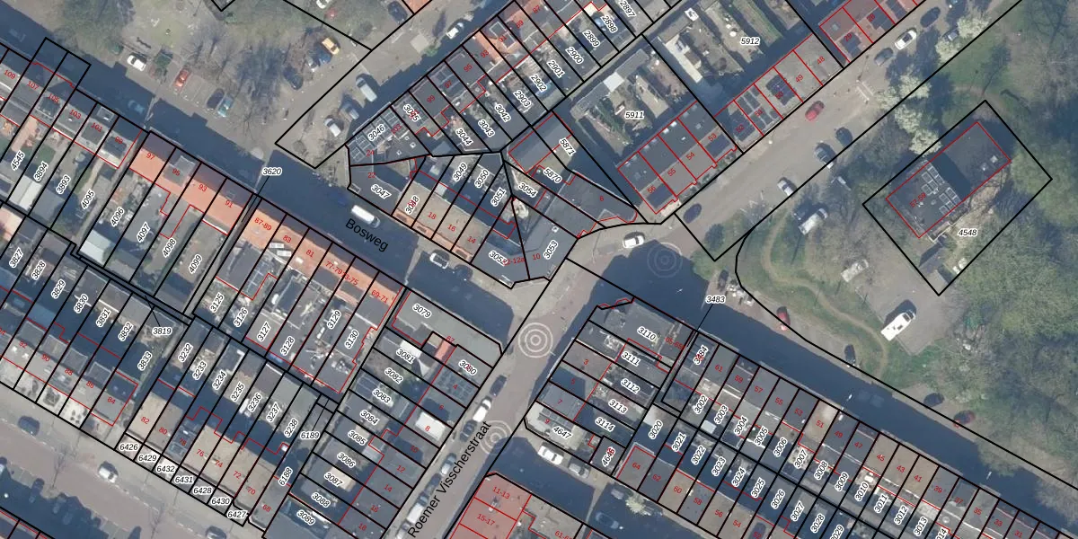 Gebruik de zoekbalk of klik op een perceel voor informatie over de adressen binnen dit perceel.