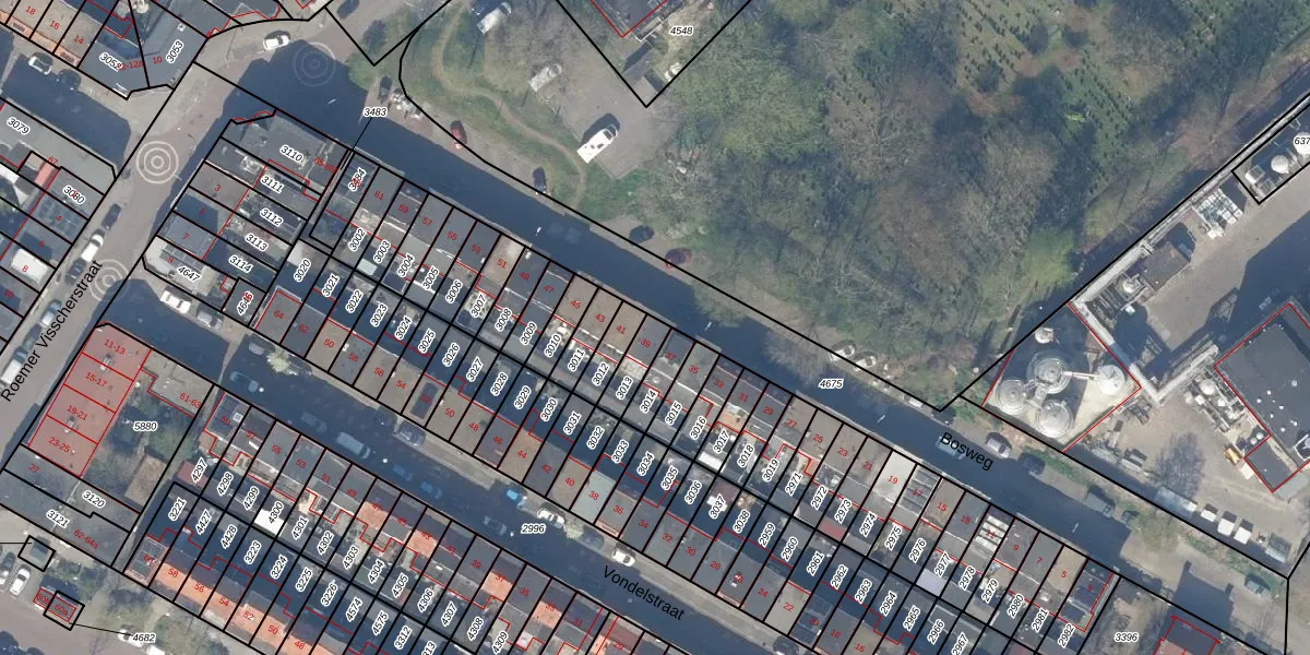Gebruik de zoekbalk of klik op een perceel voor informatie over de adressen binnen dit perceel.