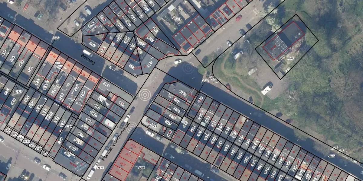 Bosweg 65-f is gelegen op kadastraal perceel GDA01E3110. Deze kadastrale aanduiding is uniek en wordt gebruikt door het Kadaster om eigendomsrechten en andere zakelijke rechten vast te leggen. Het perceel maakt onderdeel uit van de kadastrale gemeente Gouda.