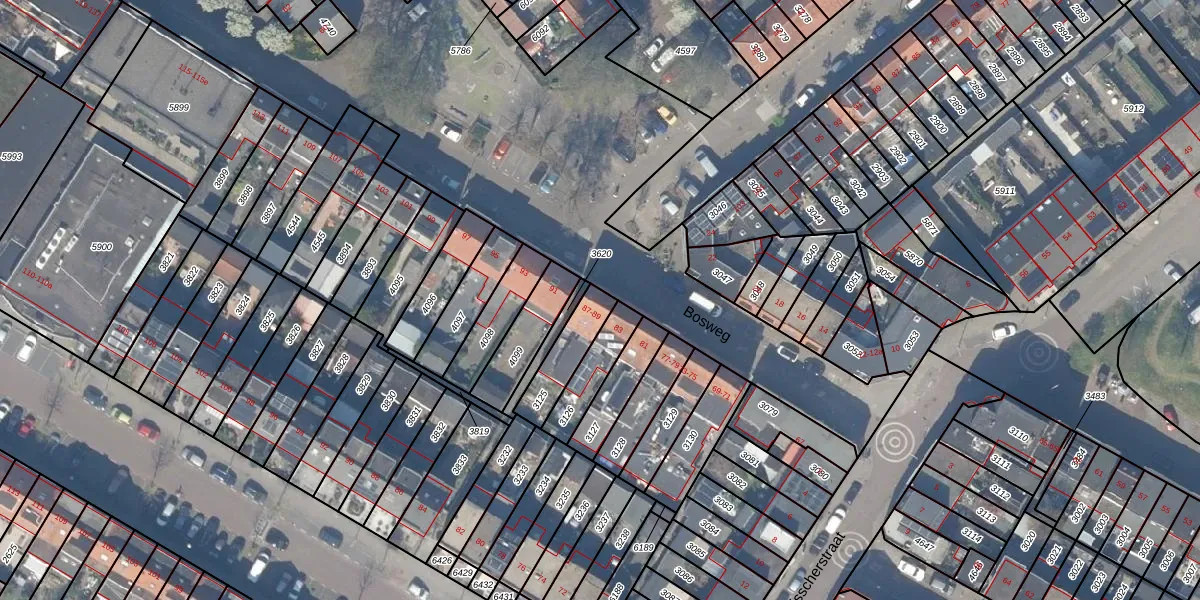 Bosweg 89 is gelegen op kadastraal perceel GDA01E3125. Deze kadastrale aanduiding is uniek en wordt gebruikt door het Kadaster om eigendomsrechten en andere zakelijke rechten vast te leggen. Het perceel maakt onderdeel uit van de kadastrale gemeente Gouda.