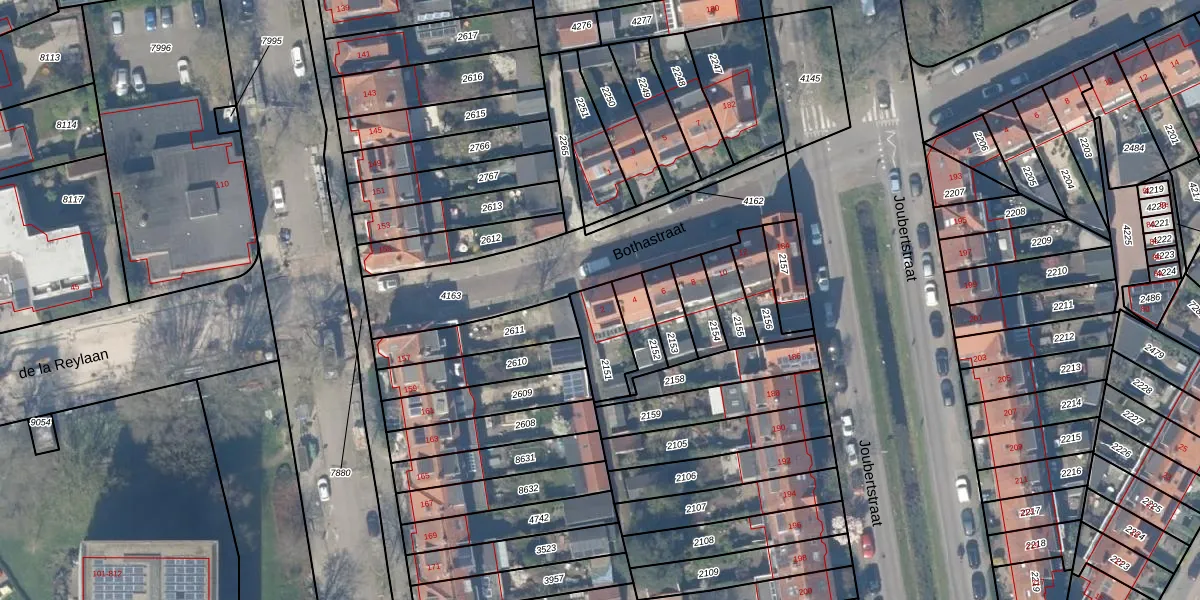 Het perceel waarop Bothastraat 2 staat heeft een oppervlakte van 140 m². Dit is een middelgroot perceel. De perceeloppervlakte wordt geregistreerd door het Kadaster. Gedetailleerde informatie over de maten van dit perceel kunt u vinden in het rapport Kadastrale kaart met maatvoering van Bothastraat 2.