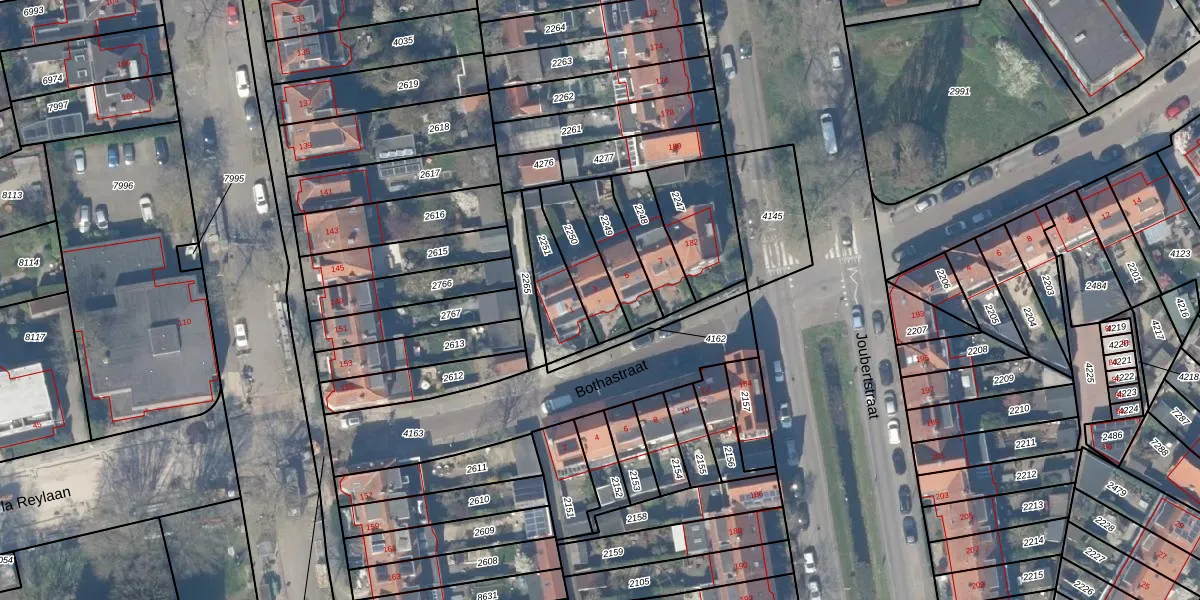 Bothastraat 3 is gelegen op kadastraal perceel GDA01K2250. Deze kadastrale aanduiding is uniek en wordt gebruikt door het Kadaster om eigendomsrechten en andere zakelijke rechten vast te leggen. Het perceel maakt onderdeel uit van de kadastrale gemeente Gouda.