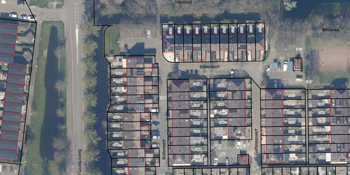 Het perceel waarop Botterwerf 18 staat heeft een oppervlakte van 163 m². Dit is een middelgroot perceel. De perceeloppervlakte wordt geregistreerd door het Kadaster. Gedetailleerde informatie over de maten van dit perceel kunt u vinden in het rapport Kadastrale kaart met maatvoering van Botterwerf 18.